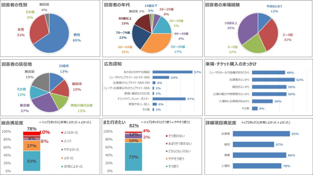 116103よかった本日の演奏は素晴らしいものでした。ただ、年に4回しかないモーツァルト・マチネではモーツァルトかそれに近い時代の曲かモーツァルトと何らかの関連のある曲を聴きたいと思いました。 (品川区、50~59歳男性)