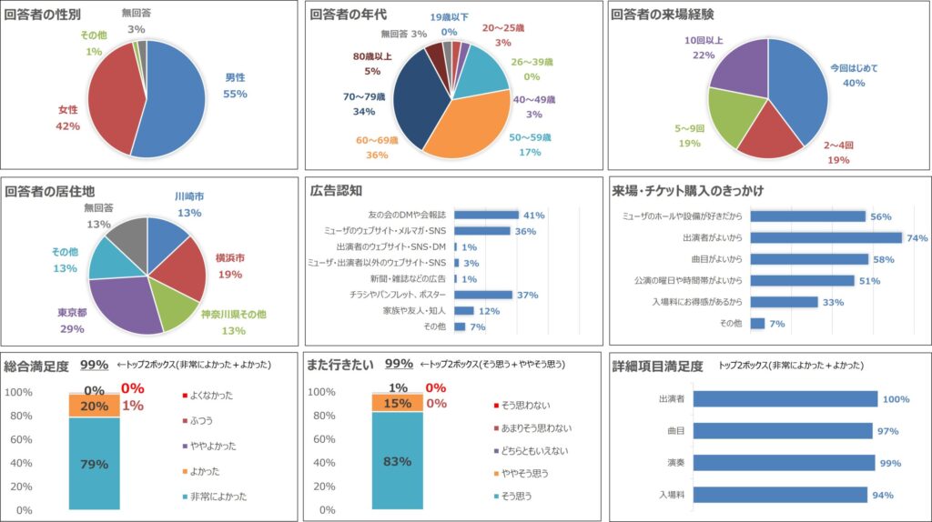 | 22133 | ふつう | あまり聞くこともない曲もあり良かった (横浜市西区、60~69歳男性) |
