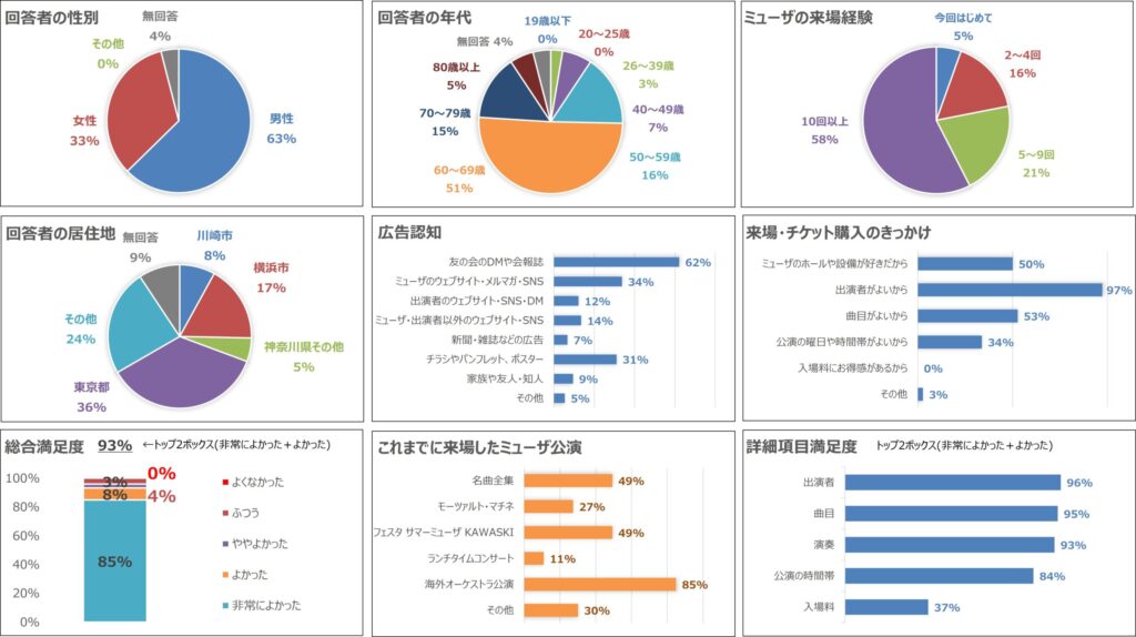 | 114123 | とてもよかった | 期待通り良かった。ミューザ川崎は鑑賞しやすい。来日コンサートが高価すぎる。チケットが取れない。 (中野区、60~69歳女性) |